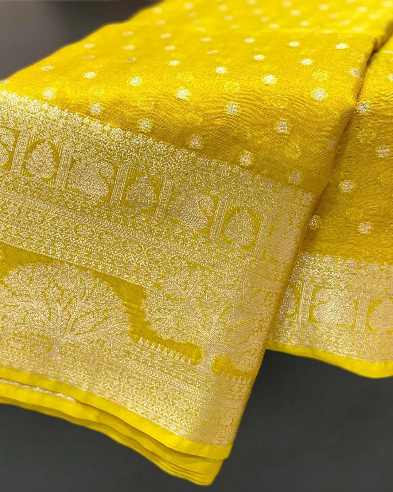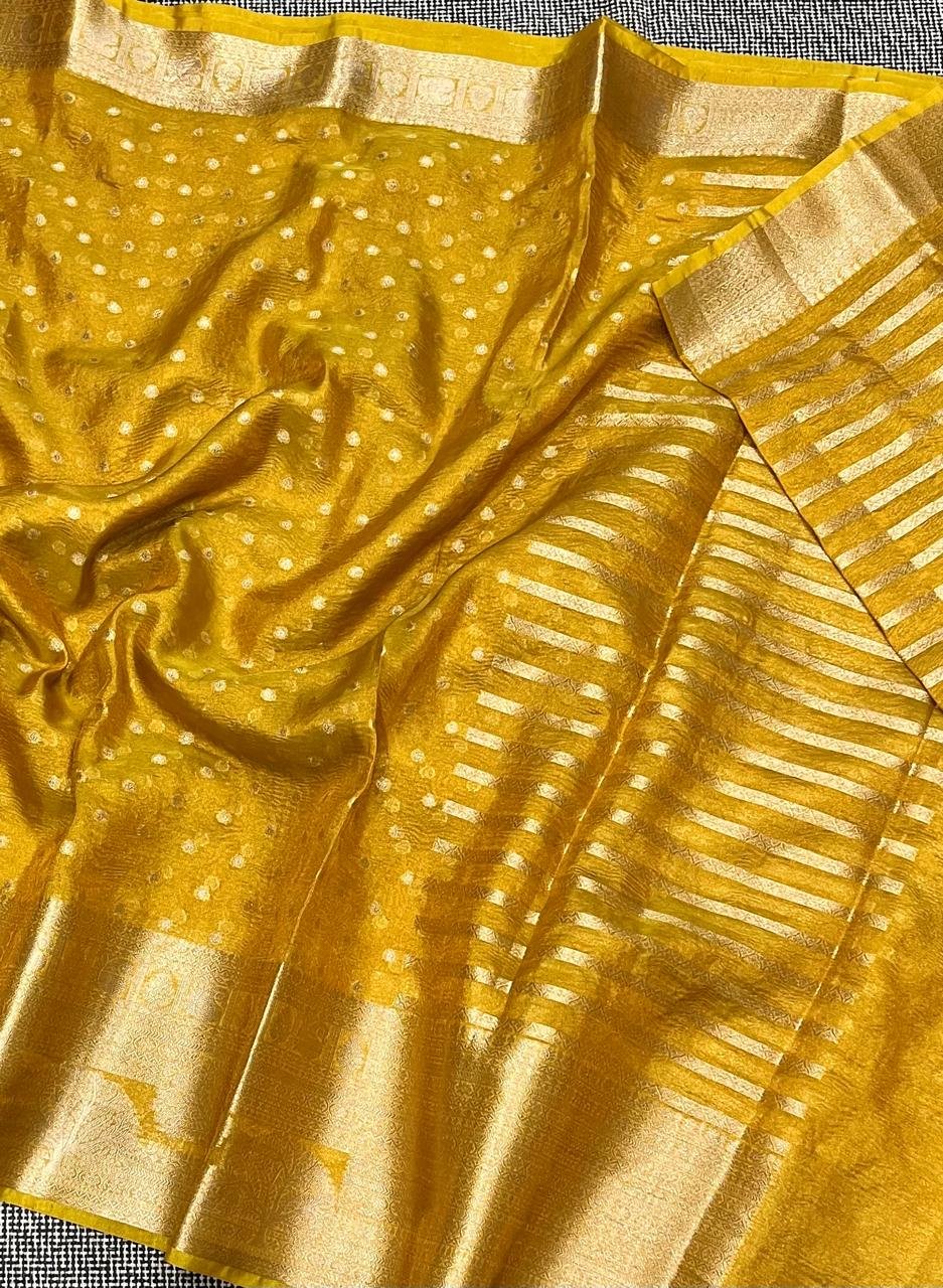 Banarasi dyeble tissue crushed saree